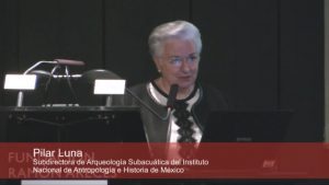 La prestigiosa arqueóloga mexicana Pilar Luna, subdirectora del Instituto Nacional de Antropología de México (INAM), abordó en esta conferencia los últimos hallazgos realizados en aguas mexicanas, el complejo marco de la colaboración y las alianzas para investigar y proteger los tesoros bajo el agua y el panorama general de la arqueología subacuática en México, así como los últimos convenios firmados entre México y España para la preservación del patrimonio arqueológico subacuático y trabajar conjuntamente en materia de investigación y exploración de pecios