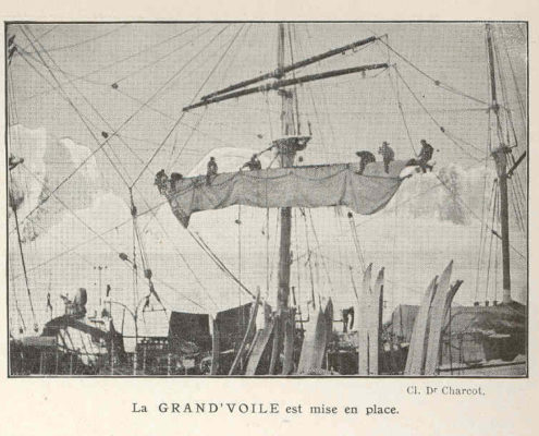 El 18 de julio de 1908 se produce la botadura del nuevo Porquoi pas? en Saint Malo. La nave –un tres palos de 40 metros de eslora- es de una robustez nunca vista, lo que resulta perfecto de cara al trabajo para el que ha sido diseñada: combatir al hielo. El Quijote de los mares ya tenía su Rocinante. Los franceses navegaban en su imaginación a bordo de aquel navío de formas redondeadas y aquel extraño capitán, moreno como un zíngaro vagabundo que no tenía más objetivo que la ruta en sí misma.