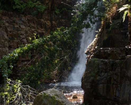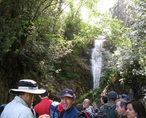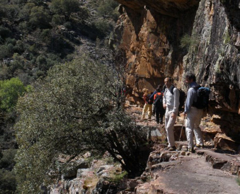 Itinerario de dificultad alta guiado por el geógrafo y miembro de la Junta Directiva, Pedro Nicolás. Se trata de un recorrido por el techo de Toledo en el que se podrá disfrutar de la belleza de un paraje totalmente diferente del que se puede esperar encontrar en estas latitudes: paredes, rocas y árboles con musgo, mientras el salto de agua de 15 metros de altura se desliza por la piedra para estrellarse contra una poza natural; un bello bosque de robles y en la cumbre vistas de los Montes de Toledo y los magníficos y frondosos valles que la surcan.