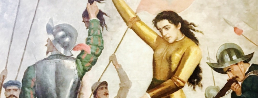 Cuando Inés Suárez dejó de recibir noticias de su marido desde el nuevo mundo, no dudó en dejar su Plasencia natal y cruzar el océano en su búsqueda. En el siglo XVI una mujer no podía viajar sola y las que se atrevían a hacerlo eran acusadas de prostitutas o eran directamente castigadas; ella consiguió el permiso real gracias a dos vecinos ilustres. A su llegada “experimentó gran sufrimiento” al conocer la noticia de la muerte de su marido y su vida cambió para siempre. Se planteó hacerse monja pero cambió de idea y compró un terreno con la herencia de su marido y se dedicó a la costura. Abrió un hospital de campaña y curó a soldados heridos. Conoció en Cuzco a Pedro Valdivia y vendió sus posesiones para comprar una montura, una espada toledana hecha a medida y una coraza. A partir de entonces, las crónicas del siglo XVI recogen lo que se podría llamar la leyenda de Inés Suárez en la expedición por tierras chilenas en la que acompañó a Pedro de Valdivia. Fundaron la ciudad de Santiago de Nueva Extremadura, la actual Santiago de Chile, en 1540 y luchó como cualquier otro soldado contra guerreros nativos.