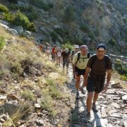 Se trata de cruzar la sierra de Gredos de sur a norte partiendo del Nogal del Barranco(1.100 m), lugar cercano a la localidad de Guisando, no lejos de Arenas de San Pedro. Se ascenderá por la garganta de los Galayos hasta el refugio Victory, culminando la ascensión en la cumbre de la Mira (2.340 m). Durante el ascenso tendremos oportunidad de ver las agujas y paredes más importantes y bellas de toda la sierra, los conocidos como Los Galayos de Gredos.