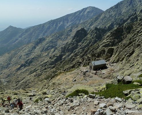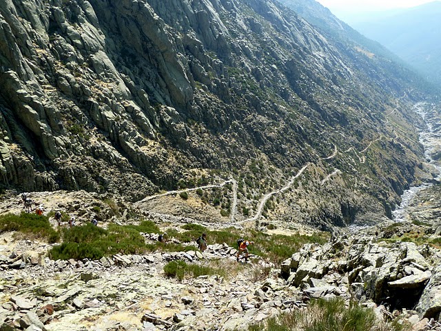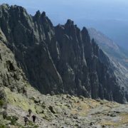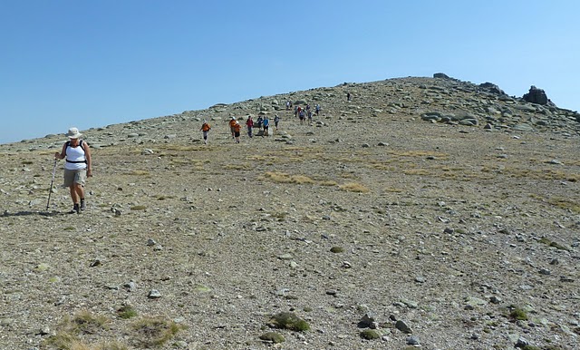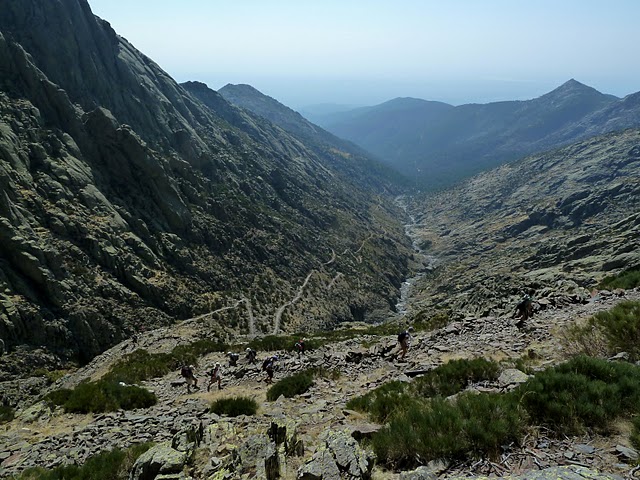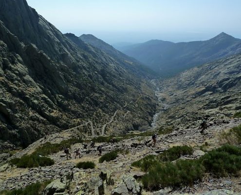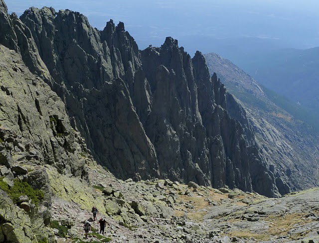Desde la Mira descenderemos por el cordal divisorio principal de la sierra hacia el oeste lo que nos conducirá a la zona de Los Campanarios. Desde el final de estas cimas nos desviaremos hacia el NO por la loma del Umbrazo hasta llegar a la Plataforma de Gredos (1.750 m).