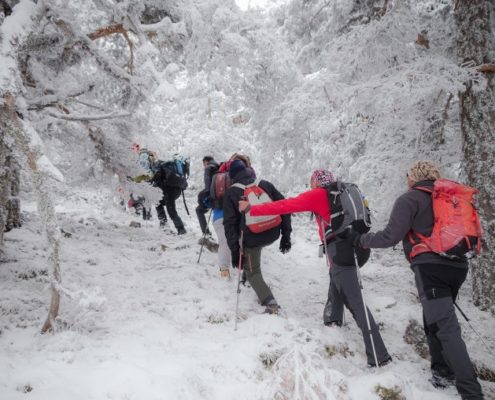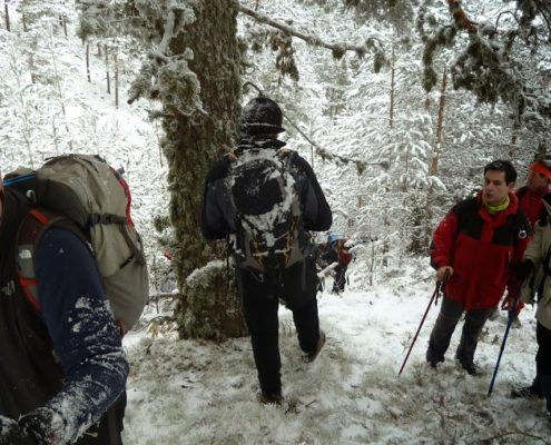 Ascenderemos a estas cimas partiendo de los 1.240 m del pueblo de Gallegos. Cruzaremos la Cañada Real Oriental Soriana, y por amplias fincas ganaderas llegaremos a los pinares serranos. Por el barranco del arroyo de peña Negra accederemos a la chorrera de El Pie desde donde nos dirigiremos a la cima de Peñas Buitreras, la más alta con 2.101 m, al Este del Puerto de Navafría. Esta cima está ligeramente desplazada al norte del cordal. Llegaremos hasta el mismo cordal y a sus cimas de Reajo Alto y Lomo Gordo, con apenas unos metros menos que la anterior, caminando hacia el SE, completando así la ascensión a las principales cotas de la zona.