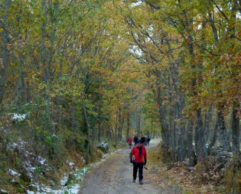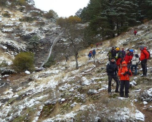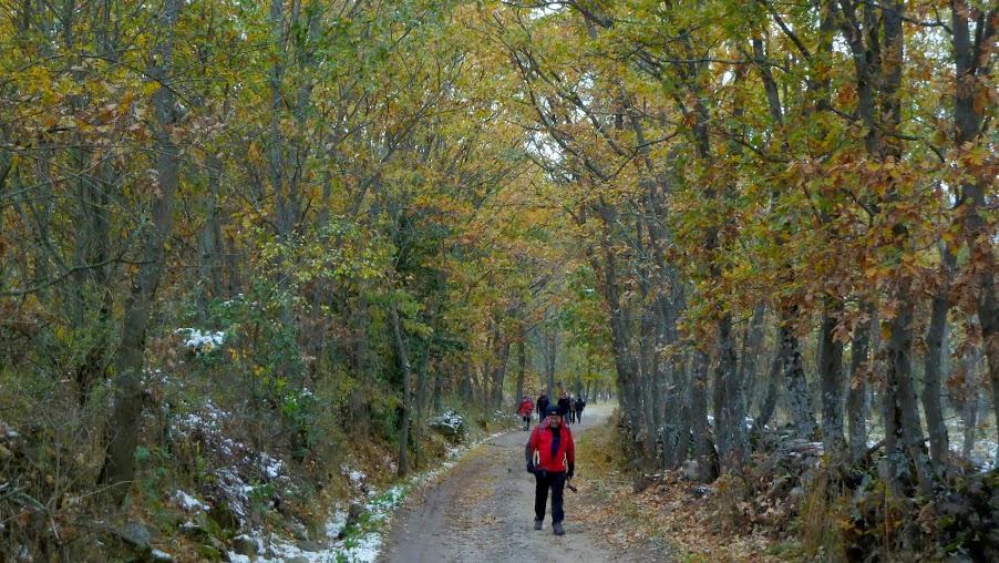 Desde Lomo Gordo nos encaminaremos hacia el valle del Lozoya hasta alcanzar la pista forestal que une los puertos de Somosierra y Navafría. Tras cruzarla nos iremos metiendo en un valle más pendiente y angosto que nos conducirá a una de las mejores cascadas o chorreras de la Sierra: la de San Mamés. Desde la chorrera nos iremos acercando a la localidad de San Mamés, no sin antes disfrutar de magníficos paisajes de robledales coronados por el macizo de Peñalara.