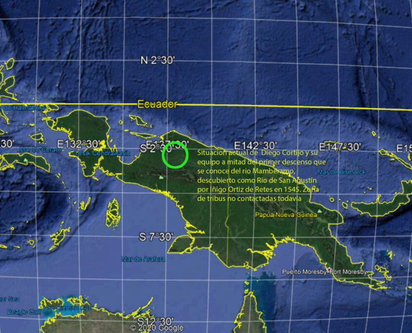 Una llamada por satélite de la expedición de Diego Cortijo por el río Mamberamo, en Nueva Guinea, cuenta brevemente sus trabajos para desenvolverse en un país casi prehistórico, en particular en zonas escasamente o nada exploradas como donde se encuentran, en unos lagos cercanos al río que solo fueron visitados por misioneros hace cincuenta años.