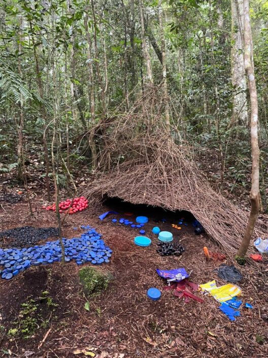 En las especies del género Amblyornis, el macho construye una estructura de ramas y la adorna con objetos varios para seducir a la hembra e incitarla a la cópula. El caso de A. inornatus es el más llamativo, y los machos despliegan frente a sus cuevas composiciones muy complejas de colores y formas. Representa un caso único de fuerte selección sexual. Este “fenotipo extendido” del macho (que en humanos correspondería al coche aparcado frente a la casa o una buena colección de arte en su interior) conlleva un coste y por tanto indica a la hembra la calidad de los genes del macho y le permite elegir pareja. Por lo tanto, la conducta ha evolucionado gracias a los sofisticados gustos de las hembras de Amblyornis durante miles y miles de generaciones…