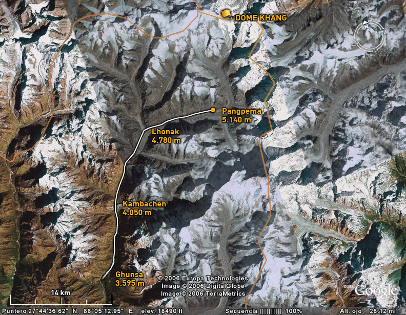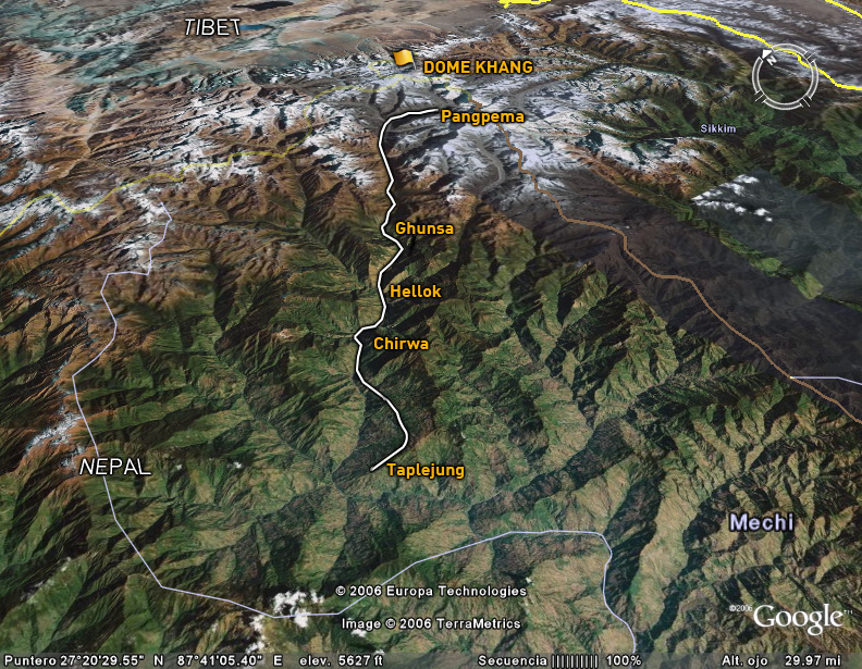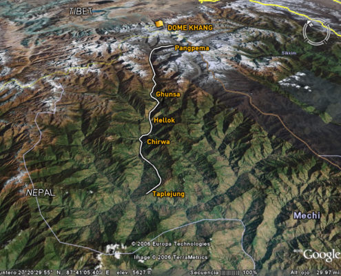 En estos dos años hemos intentado atacar el Dome Khang por Sikkim primero, y por Tibet después pero impedimentos político-administrativos entre Tibet y la India sobre esa frontera, tienen cerrada esa posibilidad desde hace mucho. Impedimentos de difícil comprensión para cualquiera que haya estado en esa remota, deshabitada y elevadísima zona de Asia.