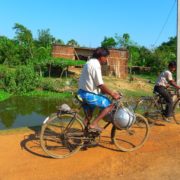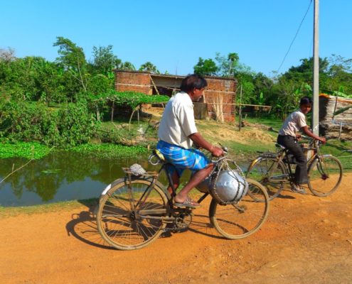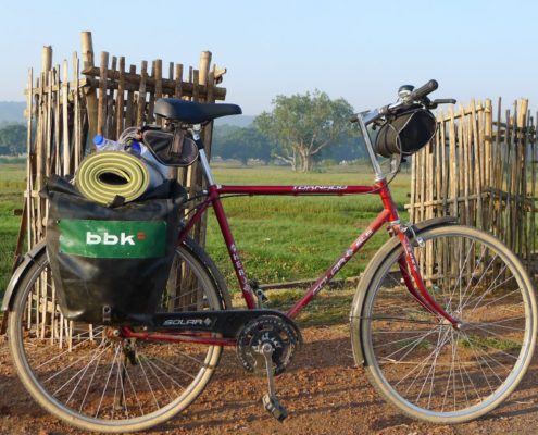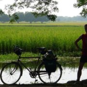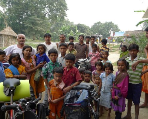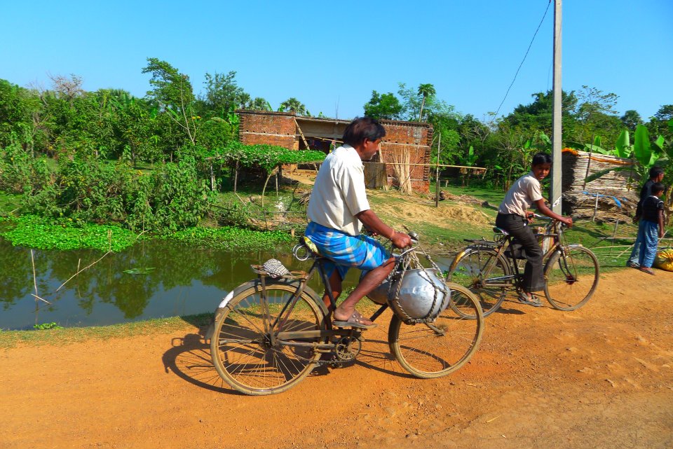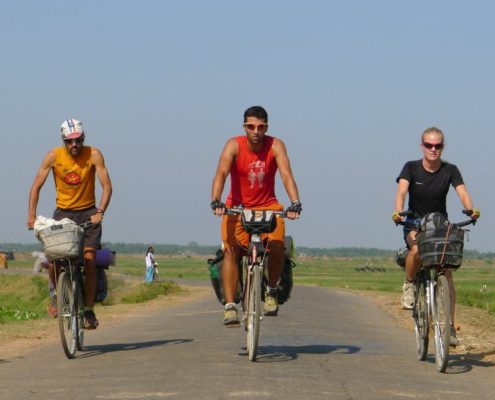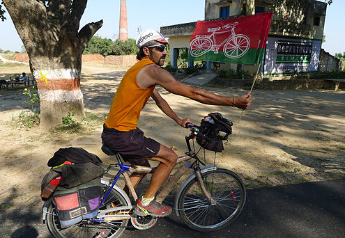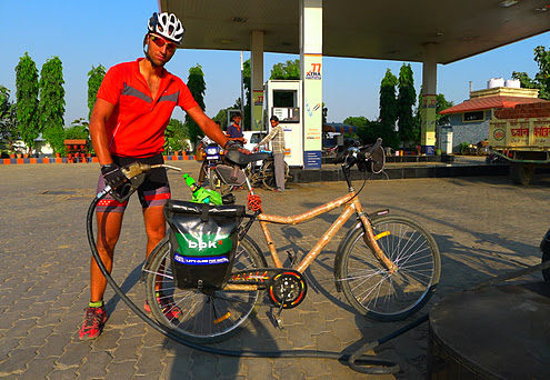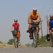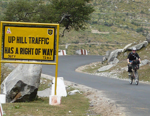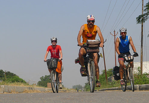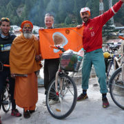 Aquí se inicia la marcha atrás en busca de las bicis en Gangotri, que alcanzan en un par de días. Toca empezar a preparar las alforjas y acoplarlas de la mejor manera a las nuevas bicicletas indias. Empieza ahora el periplo ciclista por valles y gargantas con el precipio a la vista. Indudablemente poco a poco van perdiendo altura aunque no faltan las cuestas que se hacen interminables al ser las bicis de piñón fijo, no habiendo más remedio que echar pie a tierra para empujarlas. Paisajes espectaculares y pueblos que cuelgan de las montañas animan el recorrido por una carretera muy rota con frecuentes corrimientos de tierra y caidas de rocas.