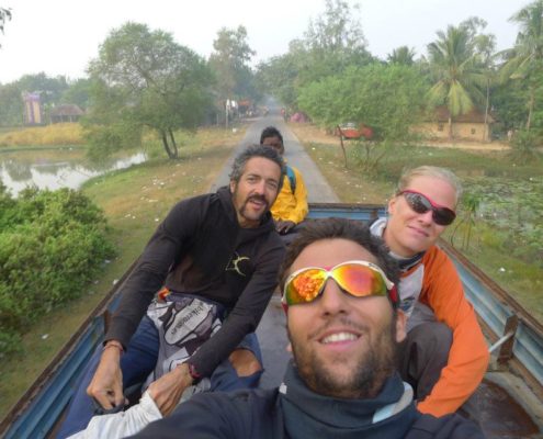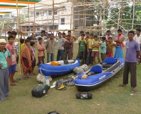 Aunque el inicio de este periplo se sitúa en el nacimiento del río, el prólogo hasta ese lugar no fue ni corto ni fácil. Hubo que llevar a cabo la búsqueda de las más convenientes canoas y bicicletas así como el estudio de la forma de recorrer el río en sus distintas partes del recorrido. Finalmente decidieron comprar las bicis en India y transporter unas canoas inflables desde España. Cabe reseñar que el presupuesto del viajees ajustado aunque también hay que destacar que los expedicionarios se identifican con un estilo de vida austero y más en un pais donde existe un alto índice de pobreza en paralelo a un turismo de lujo.