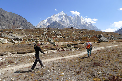 Finalmente el 6 de octubre alcanzan la “Boca de la vaca”, cueva de hielo en la base del glaciar de Gaumukh a 4.000 m. Emocionante momento que se mezcla con la alegría de los peregrinos indios tras alcanzar tan sagrado y significativo lugar. Tras remontar y conseguir cruzar el glaciaruna última cuesta les conduce a la pradera de Tapoban donde emerge imponente el pico Shivalinga(6.500 m.).
