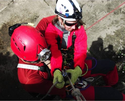 Accesibilidad a espacios situados verticalmente, rutas de ascenso o descenso mediante un equipo adecuado y formación.