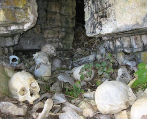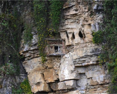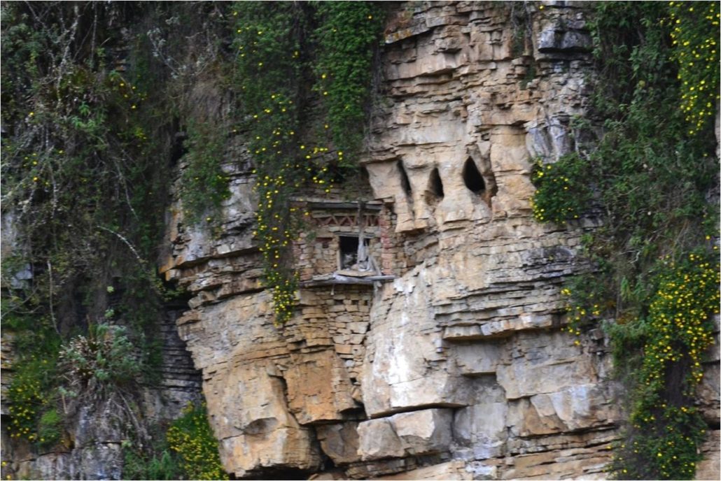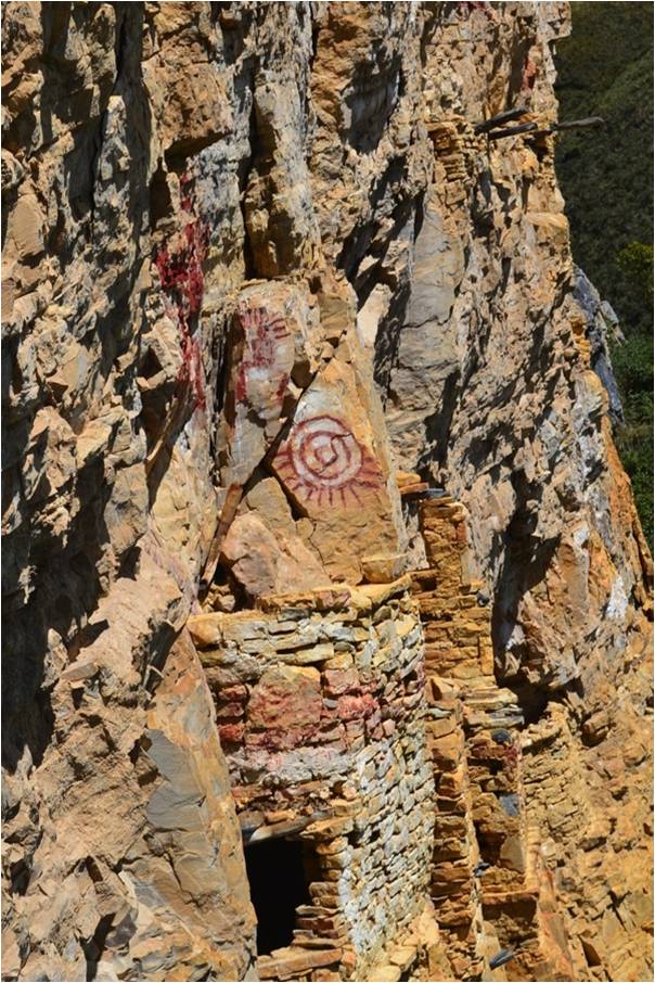 Los antiguos Chachapoya (800 AC – 1432) parece que enterraban momias humanas en tumbas de forma colectiva, colocadas verticalmente, así como construían mausoleos para enterramientos individuales, pero también los realizaban en grandes sistemas de cuevas – pudiendo así construir un lugar de reposo para los muertos por encima y por debajo de los espacios de la vida.