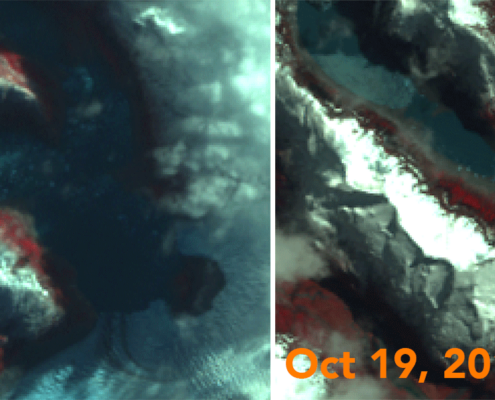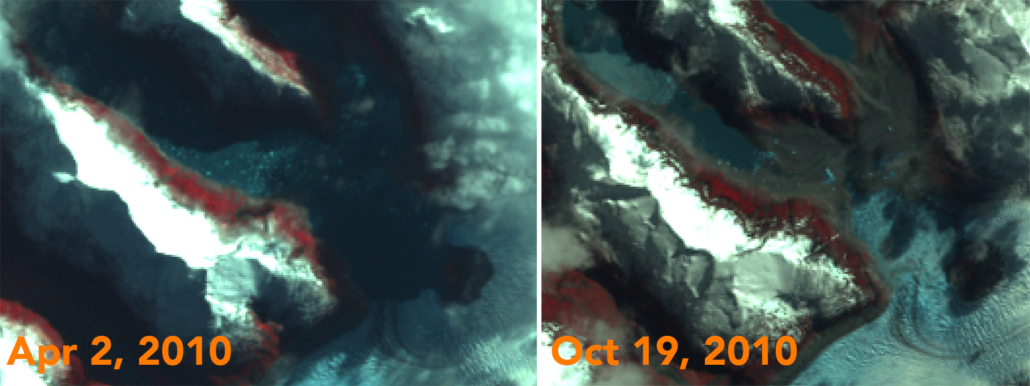 Por otro lado, se instalaron una serie de instrumentos y sensores para monitorear la dinámica del glaciar y el lago superior que sufre los eventos de drenaje repentino. Para ello, se dejaron instaladas dos cámaras de fotografía secuencial (timelapse) que servirán para analizar la velocidad a la que se mueve el glaciar y cual es la tasa de retroceso de su frente, además de dos sensores que miden conductividad y temperatura en el agua (tanto salada como dulce) para ver como las aguas de fusión repentinas impactan en estas variables.