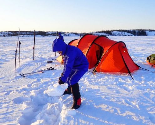 Hemos culminado 170Km en 7 etapas, en total autosuficiencia y con temperaturas entre -10 y -35ºC, remontando todo el brazo Este del Lago del Gran Esclavo, desde el sur de Yellowknife (Gross Cap) hasta Lutsle K’e, empezando el domingo día 11 y terminando el sábado día 17 de marzo.