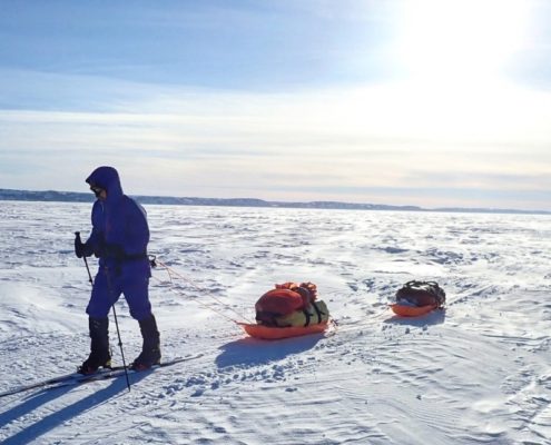 Estos grandes espacios casi vírgenes y muy remotos aportan una visión muy especial del entorno natural, pues uno se siente realmente humilde ante tanta inmensidad y tanta fuerza de la naturaleza, y no tiene más remedio que adaptarse y aprender a disfrutar de lo mucho que le aporta y de cuán especial es ese territorio, para compensar la dureza física y mental de la aventura. Disfrutar de noches con cielos repletos de estrellas y auroras boreales con ausencia de cualquier tipo de contaminación lumínica; estar durmiendo encima del hielo en puntos dónde uno sabe que la profundidad del lago llega hasta los 600 metros; escuchar el crujir del hielo bajo su cabeza cuando uno está durmiendo con la oreja pegada al suelo; o gozar de vistas inmensas en un lugar sin ningún humano en cientos de kilómetros a la redonda, son algunas de las sensaciones únicas que uno ha podido experimentar en esta expedición.