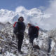 En nuestra fase de descanso en el Campamento Base, hoy día 29 hemos decidido hacer una marcha de reconocimiento por las escondidas y remotas gargantas que dominan por el norte el Campamento Base. Mientras nuestros sherpas realizan un porteo hacia el Campamento I, los cinco miembros de la expedición que estamos en el Campamento Base comenzamos a remontar las fuertes pendientes de pasto y musgo que nos llevan hacia una grandes lomas de canchales morrénicos.
