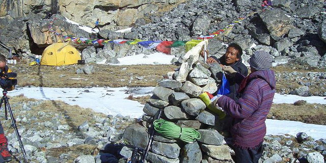 La etapa de hoy ha sido más dura que las anteriores. Si nosotros estamos cansados, algunos de los porteadores han llegado con la reserva, así que esta noche no han tenido tantas ganas de fiesta como ayer, cuando estuvieron cantando y bailando hasta que la lluvia hizo acto de presencia.