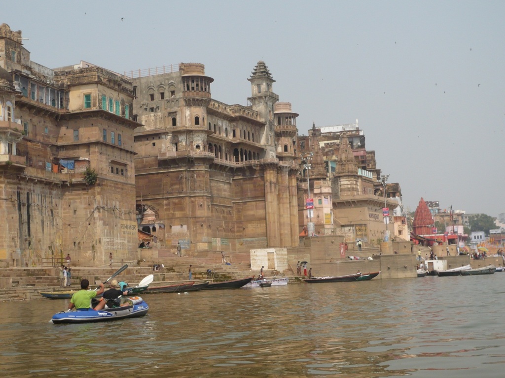 Tras alcanzar días atrás la ciudad de Calcuta, Elin Bernhard, Gonzalo Suardiaz y Juan Antonio Alegre volvieron a inflar las canoas para alcanzar el mar bajando por el río Hoogly, la primera boca del río Ganges que alcanza el Golfo de Bengala. El lugar elegido fue el Ghat (zona de escaleras que dan al agua) de Babu. Justo enfrente del bulliciosa barrio de Sudder/New Market, área de hostales donde se suelen quedar la mayoría de misioneros y viajeros de bajo presupuesto. Un bonito momento se vivió al volver a sacar las canoas de sus bolsones y darlas forma inflándolas mientras los locales del lugar tomaban su baño purificador del amanecer. Curiosos como siempre, pero con respeto y sin atosigar, miraban extrañados lo que hacían estos extranjeros.