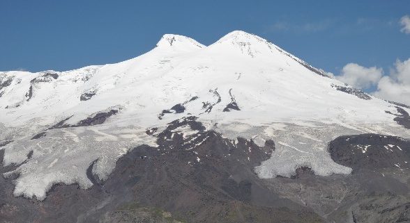 El día amanece con un sol brillante. Nada que ver con la lluvia y niebla de ayer tarde. !Me tendré que ir acostumbrando a estos cambios de tiempo tan bruscos!. El desayuno, para qué contaros, más de lo mismo. Está visto que la comida rusa no es de lo más exquisito, aunque su ensaladilla si que ha conseguido traspasar fronteras. Un taxi me lleva hasta Azau, al final del valle, donde se encuentra un teleférico que sube por las laderas del Elbrus. Es el segundo teleférico más alto de Europa, después del de la Aiguille de Midi, en los Alpes, pero las infraestructuras no tienen nada que ver, pues aquí predomina el ya familiar estilo ruso, tan cochambroso y viejuno. !Pero bueno, mientras funcione, no hay por qué quejarse!. Estoy a 2.350 metros de altura y subiré hasta los 3.700 metros en 3 tramos. Primero, me monto en un viejo telecabina rojo, junto con varios turistas, y ascendemos progresivamente por las laderas más bajas del Elbrus. En pocos minutos llegamos a los 3.000 metros, desde donde ya se divisa al fondo las cumbres gemelas del Elbrus, de un blanco inmaculado. El paisaje ha cambiado radicalmente y desde aquí en adelante la roca volcánica es la dueña de las laderas de este volcán, el más alto de Europa. Un nuevo telecabina nos sube ahora hasta los 3.450 metros, en el segundo tramo de la ascensión. Al llegar al mismo, y mientras voy de camino a coger el siguiente tramo, unos turistas rusos, a los que por lo visto les debo de llamar mucho la atención por mis “pintas” montañeras se hacen una foto conmigo. El tramo final se sube en un telesilla, ya con unas vistas imponentes del altivo Elbrus, donde me monto agarrando con cuidado la mochila para que no se caiga. Tras unos 10 minutos alcanzo los 3.700 metros, sin apenas haber andado nada desde los 2.350 metros del valle. !Menudo ironía! Pero justo a esta altura me olvido de cualquier medio mecánico, y la montaña la subiré a pata, pasito a pasito.