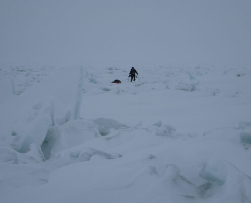 Ambos expedicionarios comentan que “la fase final del trayecto fue la más dura sin duda. Nos encontramos con kilómetros de hielo caótico que nos ponía al límite físicamente, avanzando una media de 6 Km cada 7 horas y obligándonos a avanzar durante la noche para poder alcanzar la costa de Suecia en el tiempo previsto”.