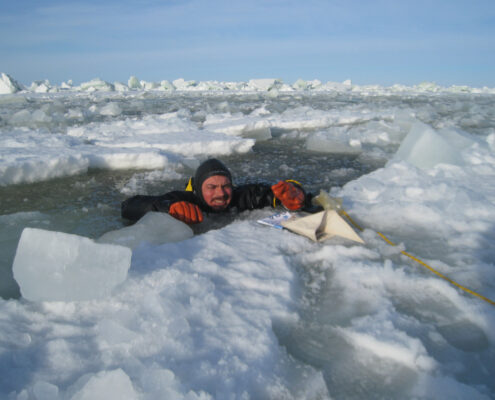 Paco Acedo llevó a cabo por primera vez en la historia inmersiones bajo el hielo en el centro del mar Báltico, entre Finlandia y Suecia. El expedicionario comenta que “las condiciones eran pésimas para llevar a cabo un buceo de estas características. Mucho viento, los equipos se congelaban, días sin sol con muy poca visibilidad bajo el hielo, y en definitiva un hielo con mucho movimiento que no me inspiraba ninguna confianza, lo cual no impidió que culminásemos el reto asumiendo que a mayor riesgo mayor recompensa”.