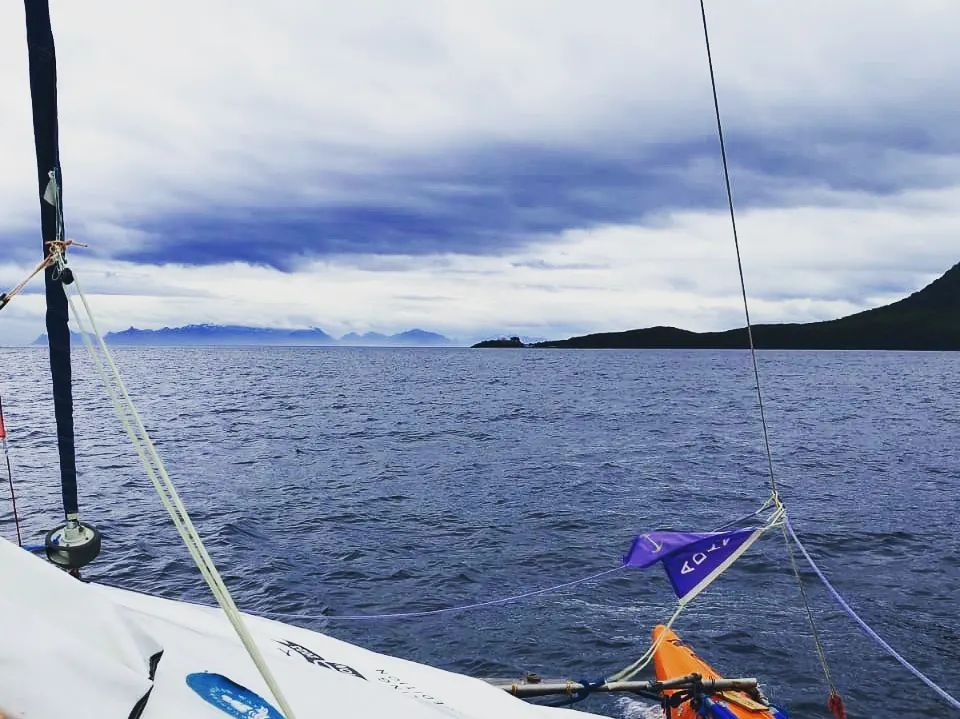 18.10 aproximación Froward Point. El viento nos hace retroceder. Media hora de esperanza, es solo una ráfaga. Luego regrese a la orilla. Estirar el trimarán entre el ancla y la orilla. Hoguera. El ancla se sostiene mal. Estamos esperando que el viento se debilite.