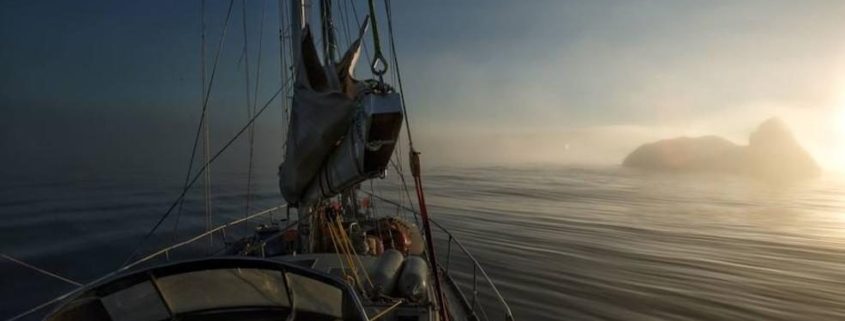 Bajo una pared de cientos de metros escalada por primera vez por el mítico navegante y escalador Bob Shipton, realizamos las primeras filmaciones del barco desde la Zodiac; no muy lejos yace bajo las olas el yate del legendario explorador, el Dodo`s Delight, que cayó presa de un incendio. En el cementerio de Upernavik está también la tumba de Navarana, la esposa inuit del gran explorador ártico Peter Turgen; el pionero, junto a Knud Rasmussen el más famoso explorador de los desiertos árticos groenlandeses, tuvo que instalar el monumento a parte del cementerio oficial, pues su mujer no era cristiana y fue vetado por la iglesia. Eran los tiempos de las grandes epopeyas, cuando Upernavic estaba hecho de casas de turba, como cavernas ocultas de la vista y protegida frente a los elementos.