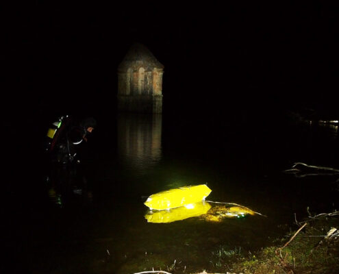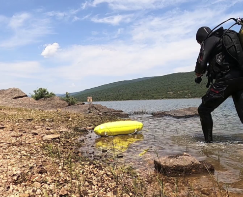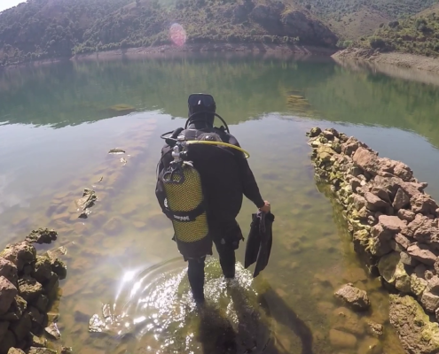 De todos éstos lúgubres pantanos, 12 fueron los que escogí para explorar en dos etapas durante varios meses recorriendo toda España en furgoneta,…y durmiendo ahí, junto al pantano. En la primera ocasión me acompañaba un buen amigo que pese a que inicialmente bucearía conmigo, tras un primer intento decidimos que no era buena idea. Un pantano con una angustiosa visibilidad de en ocasiones menos de 1 metro no era sitio para alguien que se inicia en el buceo; Es algo serio incluso para experimentados como yo.
