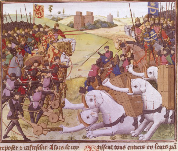 De todas las campañas protagonizadas por el capitán macedonio, la más insólita fue sin duda la que llevó a cabo en India -el actual Punjab (Pakistán)-; dividida entonces en una serie de reinos que cobijaban una civilización situada al borde del mundo conocido por los clásicos. En estas regiones combatió a Poro, rey de Paura y de los pauravas, que le atacó al frente de un ejército cuya vanguardia la formaban carros y elefantes.