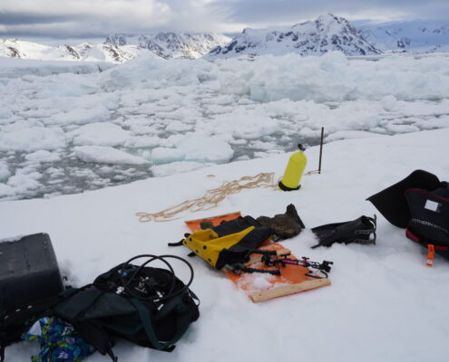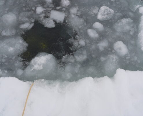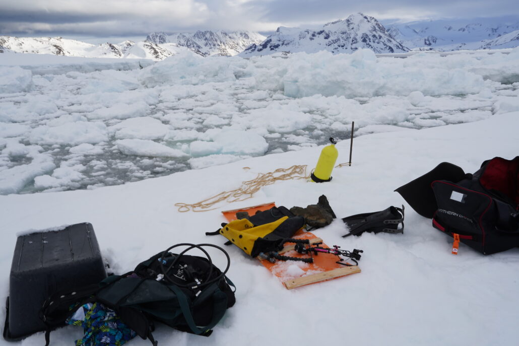 El tiempo fue pésimo, las circunstancias totalmente desfavorables y el equipo de buceo (incluida botella traída desde España) cada vez más pesado de arrastrar por la nieve…pero finalmente lo pude hacer. Me reencontré con aquellas sensaciones, aquellos latidos fuertes, aquella certeza de estar solo, aquellas manos heladas y aquel único y mágico paisaje submarino del que sólo unos pocos intrépidos se atreven a disfrutar.