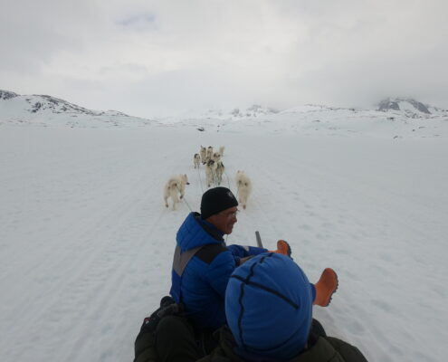 Recuerdo que la primera vez que estuve en Groenlandia allá por 2010 fue en la costa del nordeste, en un lugar de nombre extraño y casi impronunciable llamado Ittoqqortoormiit. En aquella ocasión acompañaba a un grupo guiado asegurando que tenía experiencia en el uso de esquís…pero mi secreto era que jamás me había puesto unos y los primeros que me calcé fue allí mismo para recorrer durante 12 días banquisas heladas arrastrando una pulka de 40kg. Sin duda sobreviví y la única razón para ello fue estar fascinado por aquel espectáculo de la naturaleza y esas emocionantes noches acampando a -25º. Pero si algo me maravilló fue la cultura Inuit y esos guerreros cazadores que a base de látigo y perros recorrían las costas en busca de focas, osos o cualquier animal con el que poder alimentarse durante el año.