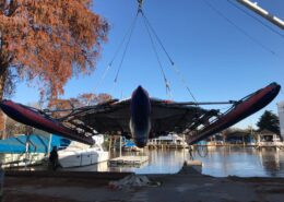 18 de junio de 2022 Desde las 7.00 hasta las 16.00 horas realizamos la operación de desembarco del trimarán en el territorio del Club Astillero Náutico San Fernando, no fue fácil, la primera escala fue hace tres días, todavía nos están preparando. Y ya hemos descargado media tonelada de cosas en el Muelle. Los empleados de la marina del club náutico nos ayudaron a transportar las cosas por el canal hasta el club náutico, desde donde Stas y yo las trasladamos a la tercera planta del Sports Hostel. . Allí el comodoro del club, Luis César Martínez Castro, nos facilitó una habitación. ¡¡¡Muchas gracias al comodoro y al club!!! El trimarán fue conducido al muelle a la entrada del puerto deportivo. Vivió allí durante dos días sin Stas y sin mí. El sábado a partir de las 7 am cruzamos con Stas y el argentino Sebastián al astillero. Allí, el jefe del Astillero, Carlos, atrajo, a pesar de la jornada libre, a cinco trabajadores. Entre todos, en tres horas llevamos a cabo la operación de desembarcar el trimarán y ponerlo a punto para la reconstrucción.