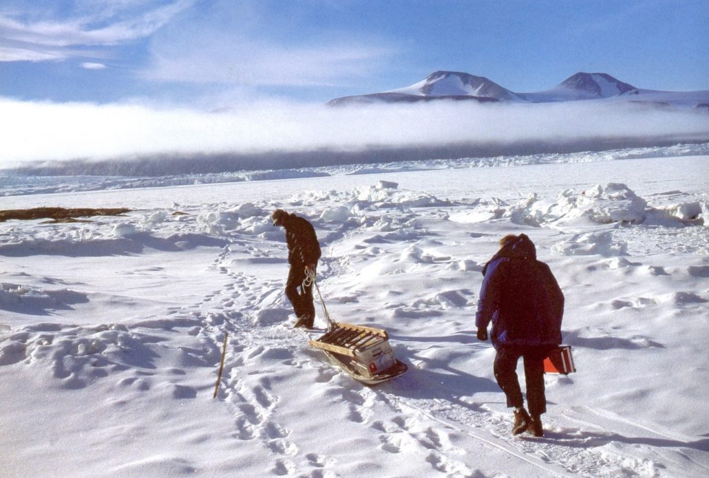 El sencillo paseo que habíamos previsto por la mañana se había convertido en una agotadora excursión que nos estaba llevando al límite de nuestras fuerzas. Después de más de diez horas de esquiar y trepar un desnivel de unos setecientos metros bajo una radiación implacable, las energías y los dos litros de agua y té que cada uno transportaba se extinguían al unísono. Las mochilas llenas de muestras de rocas con líquenes pesaban cada vez más y complicaban el descenso en esquís por las laderas más empinadas. Los últimos kilómetros hasta el campamento fueron realmente penosos. La nieve se nos antojaba arena ardiente que de ninguna forma podía calmar nuestra sed después de dieciocho horas en aquel desierto helado.