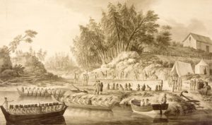 Por su parte, la “Atrevida”, al mando de Bustamante viaja hasta la colonia portuguesa de Macao, para comprobar las excelentes relaciones comerciales que China sostenía con Manila merced a los desvelos del virrey de Filipinas, el alicantino Félix Berenguer de Marquina; Nueva Zelanda y Port Jackson, en Australia, donde Malaspina regala al gobernador unos bellos dibujos de Brambila para que se remitan al rey Jorge III, desconocedor de la realidad de sus dominios y lugar en que acababa de instalarse la primera colonia británica en Botanic Bay; el archipiélago de las Vavao, paradisíaco lugar en que Malaspina conoció las hieles de la embriaguez y, con toda seguridad, las mieles del amor…, a pesar de su promesa de castidad como caballero de la Orden de Malta; de nuevo las costas peruanas y vuelta a casa hacia el este por la Tierra del Fuego, las Malvinas y Montevideo.