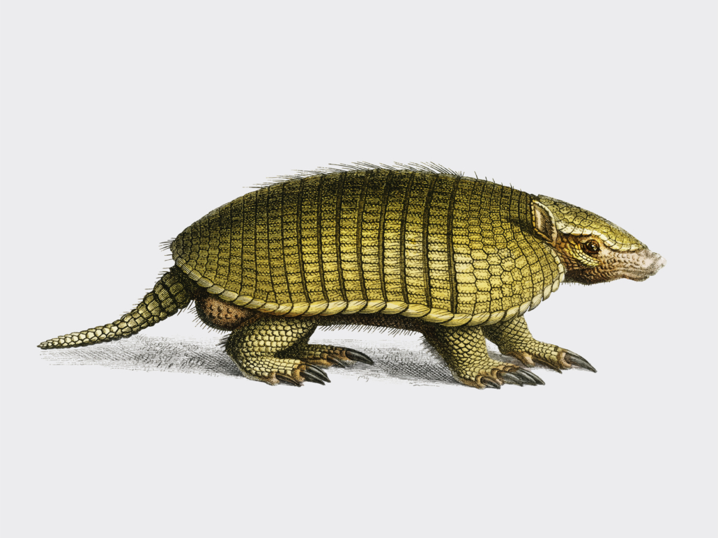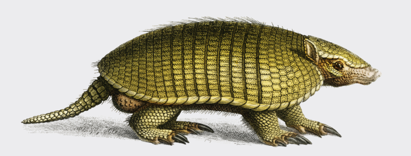Que quiere decir conejo con concha de tortuga y que en español se conoce como armadillo. Es descrito como un perro de tamaño pequeño, con unas láminas duras como la concha de una tortuga, con pezuñas como los del erizo terrestre.