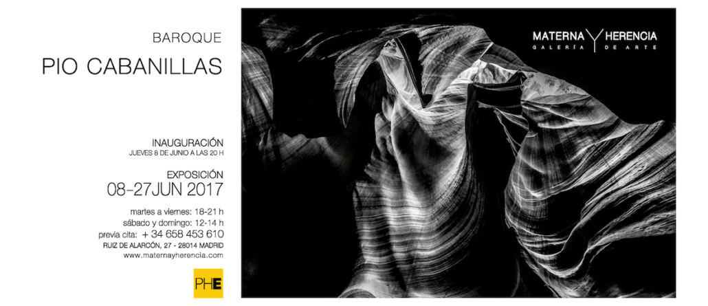 El próximo 8 de junio se inaugura la exposición de fotografías que, bajo el nombre de Baroque, reúne parte de la obra de Pío Cabanillas, vicepresidente de la SGE. La muestra forma parte del Festival Off de PHotoEspaña 2017 y estará abierta al público en la galería Materna y Herencia (Ruiz de Alarcón 27) hasta el 27 de junio.