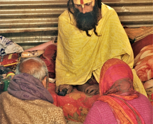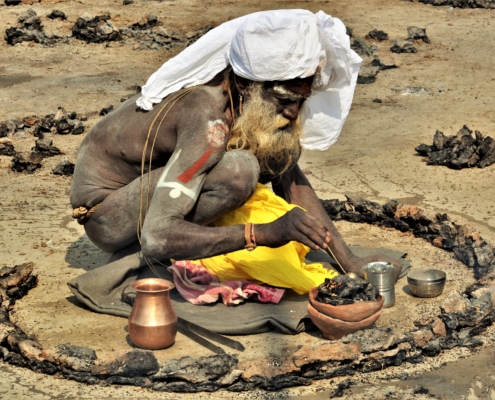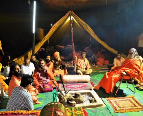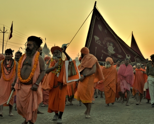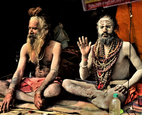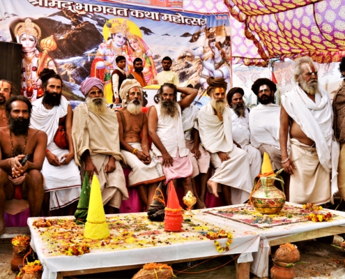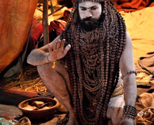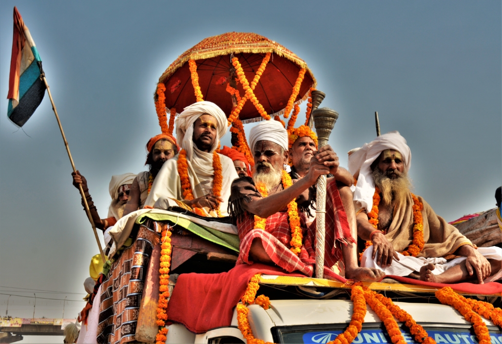 La Kumbha Mela es también una oportunidad única para ver miles de estos santos errantes. Los peregrinos se acercan con admiración a sus campamentos para tomar un té con ellos, charlar, tal vez compartir una pipa de marihuana o simplemente recibir su bendición.