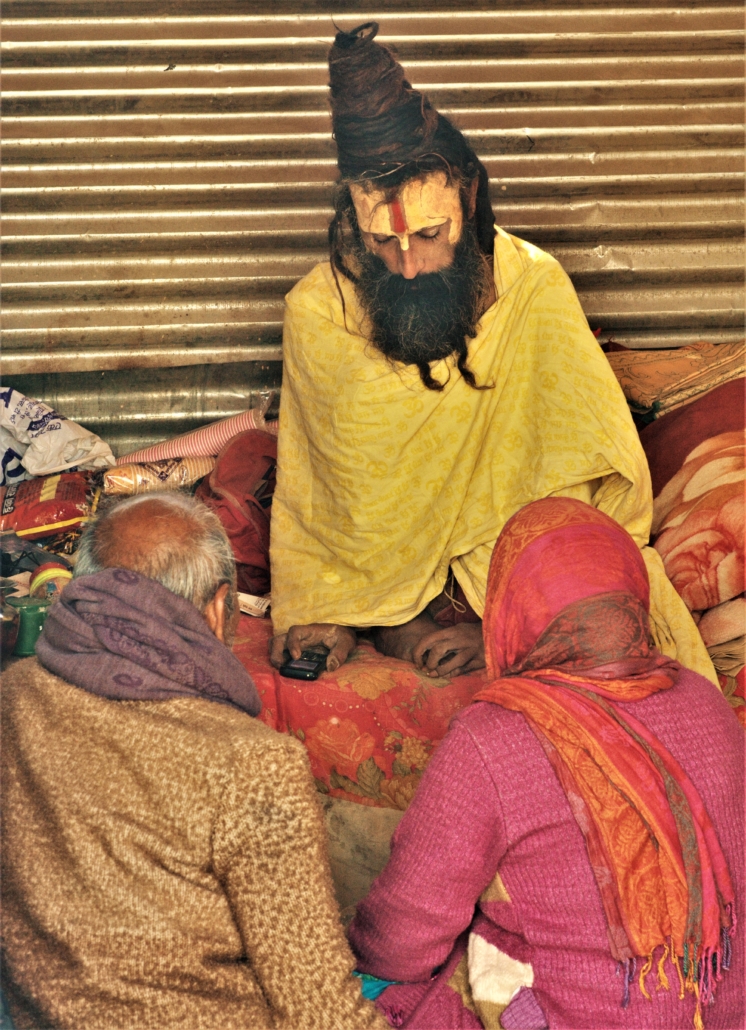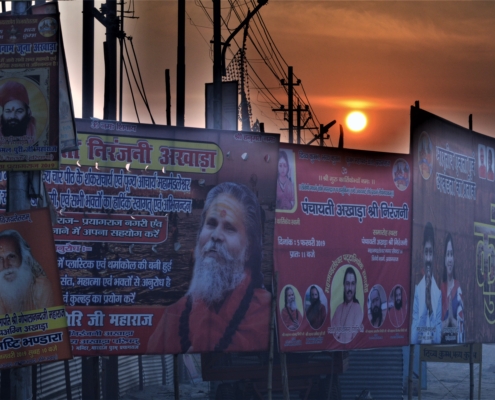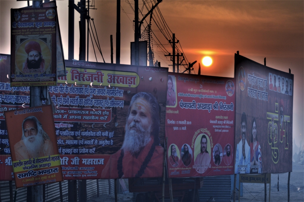 Por las calles de la ciudad efímera de Kumbh Nagri, de la que luego hablaremos, se pueden ver cientos de carteles anunciando las charlas de los maestros, que compiten entre ellos por atraer a los peregrinos. Hay entre aquellos personajes de todo tipo. Desde los que mantienen un perfil bajo y se muestran en raras ocasiones fuera de sus ashrams a otros que son muy mediáticos y activos en los medios de comunicación y redes sociales.