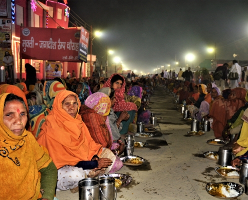 Para el hinduismo la caridad –dana- es una forma de equilibrar la sociedad y es una obligación para sus seguidores. Durante la Mela las organizaciones religiosas y fundaciones privadas son muy activas. Ofrecen alimento y refugio a los peregrinos más necesitados e instalan hospitales que no solo atienden las emergencias, sino que hacen diagnósticos y consultas.