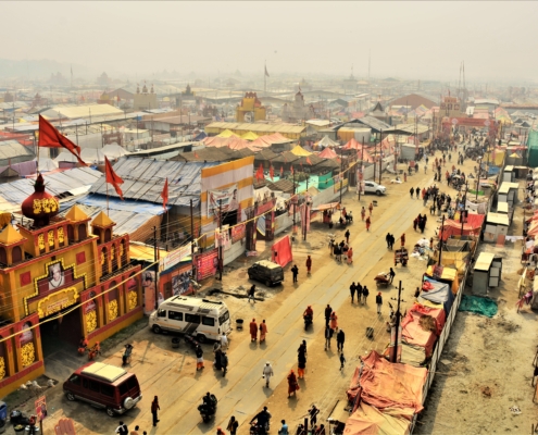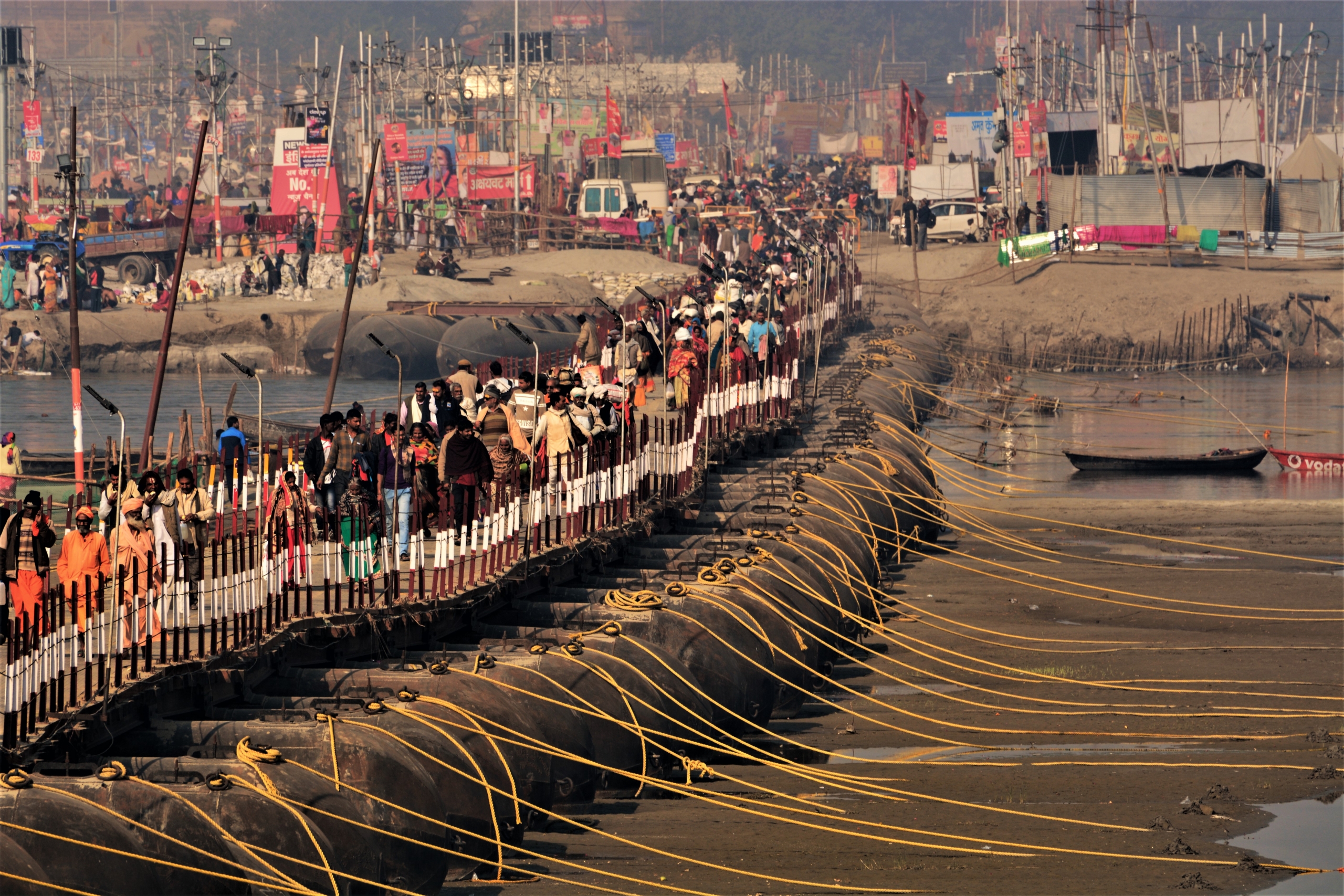 En la Kumbha Mela se muestra la capacidad organizativa y tecnológica que tienen, al construir en pocos meses una ciudad efímera capaz de albergar con comodidad aceptable, seguridad e higiene a más de ciento cincuenta millones de peregrinos en las seis semanas que dura el festival.
