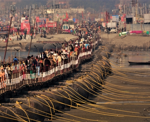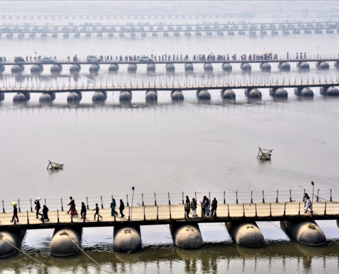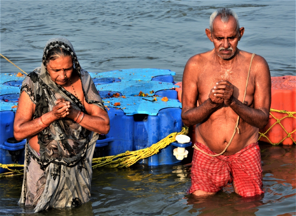 El agua ha sido siempre para todas las culturas un símbolo de purificación, para el hinduismo es algo más, ya que los ríos sagrados no son meras corrientes de agua, sino la materialización de una diosa. El Sángam de Prayagraj es un lugar muy especial, ya que en él no solo confluyen los dos ríos visibles, Ganges y Yamuna, sino que se cree que hay un tercer río no visible, el Saráswati, que encarna a la diosa de las artes y las letras.