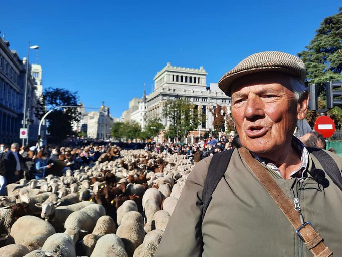 Jesús Garzón realizando la trashumancia por las calles de Madrid.