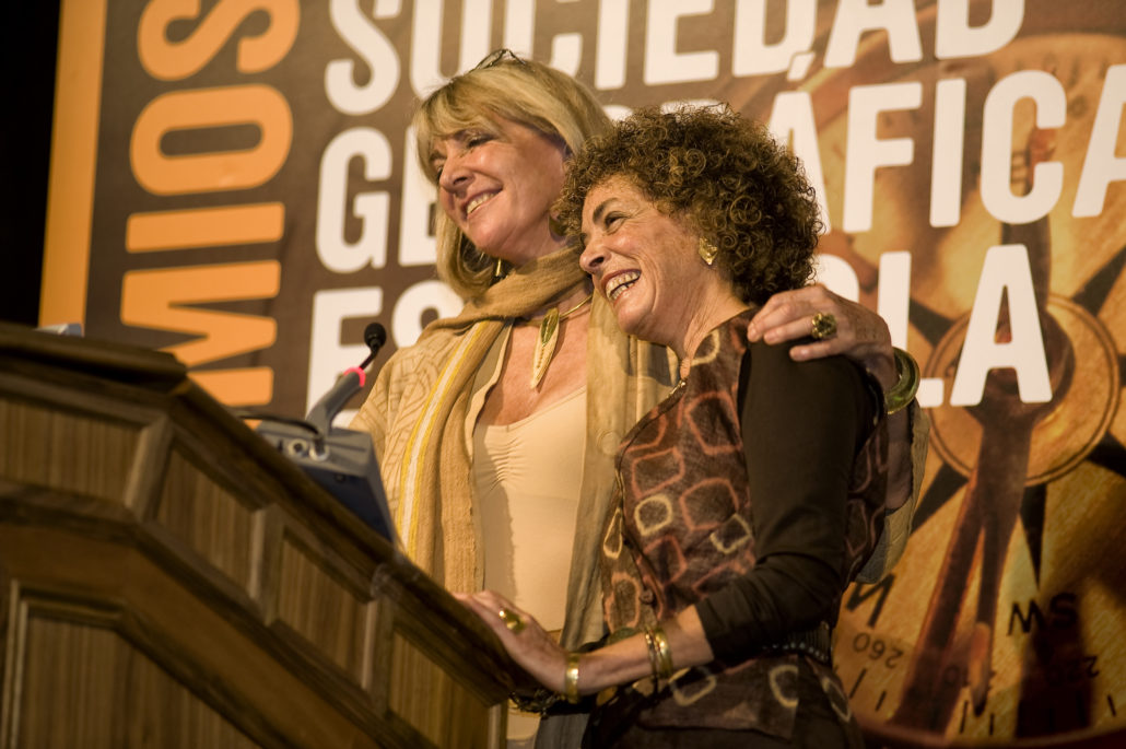 Destacadas fotógrafas, colaboradoras habituales de la revista National Geographic, y, sobre todo, impenitentes viajeras, que comparten su pasión por África. Sus vidas son tan extraordinarias como sus fotografías del continente negro, que han recorrido, a pie, en burro, en barca… según lo hayan exigido las condiciones del terreno. Hace más de treinta años que viajan por África, diez de ellos juntas, dedicadas a observar y fotografiar el ciclo de la vida de los pueblos africanos a través de sus ceremonias. La SGE ha querido destacar con este premio su importante labor en la documentación de rituales no occidentalizados y el valor antropológico de sus fotografías que recogen las tradiciones y valores de las culturas africanas más allá de titulares periodísticos.