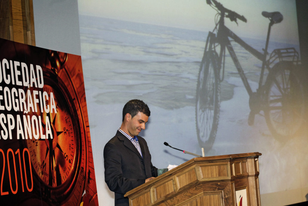 Expedición de Juan Menéndez, especialista en expediciones de alta dificultad en bici y en solitario por los entornos más remotos del planeta. En 2010 consiguió atravesar el lago más profundo de la Tierra, el Baikal, pedaleando durante 19 días más de 730 kilómetros sobre el agua helada y con temperaturas de -22ºC. La SGE le concede el galardón por su capacidad de superar nuevos límites y por heredar el espíritu de aventura de los grandes viajeros de todos los tiempos.