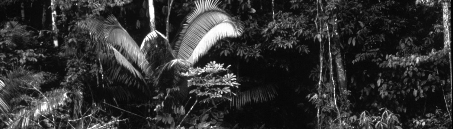 Decíamos que la evocación de una jungla integrada por una vegetación enmarañada e impenetrable se nos antoja desacertada pues, un bosque primario –aquel que no ha sufrido alteración alguna–, presenta como elementos dominantes de su vegetación los árboles de gran porte. Son, por tanto, sus troncos y raíces tabulares o sustentativas las que configuran el panorama que se presenta a la altura de nuestros ojos, una vez inmersos en la espesura. Con frecuencia este panorama se ve interrumpido por los bejucos retorcidos que, como columnas salomónicas, se abrazan a los árboles en una desesperada búsqueda de luz y nos cortan el camino. La vegetación del sotobosque es, por lo general escasa y vive como puede en la semipenumbra, ávida siempre de esa luz solar que la impenetrable bóveda le escatima. Este estrato basal está constituido, fundamentalmente, por arbustos (rubiáceas, piperáceas y melastomatáceas) y herbáceas (aráceas, marantáceas, zingiberáceas y musáceas) y solo, cuando la caída de algún árbol abre un claro, comienza la vegetación una carrera desenfrenada en pugna por llegar a lo más alto.