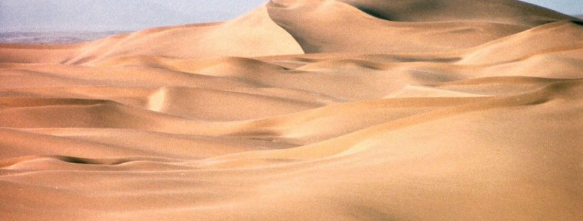 Puede ser una selva, por tanto, o un altiplano gélido o la cumbre de una montaña o las regiones polares o los mismos mares. O una calle, un parque, una casa que están o se han quedado vacíos, es decir, desiertos. El desierto es, pues, ante todo, un lugar sin gente. Y, en concreto, además, claro está, también según la RAE, lo que solemos llamar tácitamente con ese nombre en el lenguaje común y en el geográfico: un terreno seco, calificado por su intensa aridez, un “territorio arenoso o pedregoso, que por la falta casi total de lluvias carece de vegetación o la tiene muy escasa”.