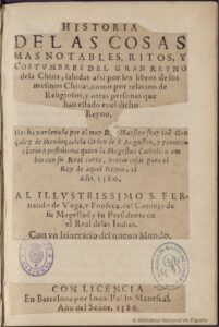 Misioneros. Historia de las cosas más notables, ritos y costumbres del gran Reyno de la China. 1586