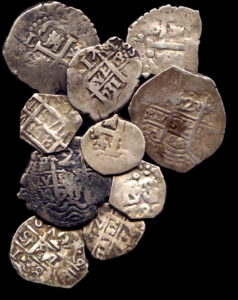 Monedas de plata acuñadas a mano. Macuquinas.