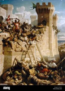 Los caballeros de la Orden de Malta defienden la fortaleza de Acre en 1291. Obra de Dominique Papety, c.1830.