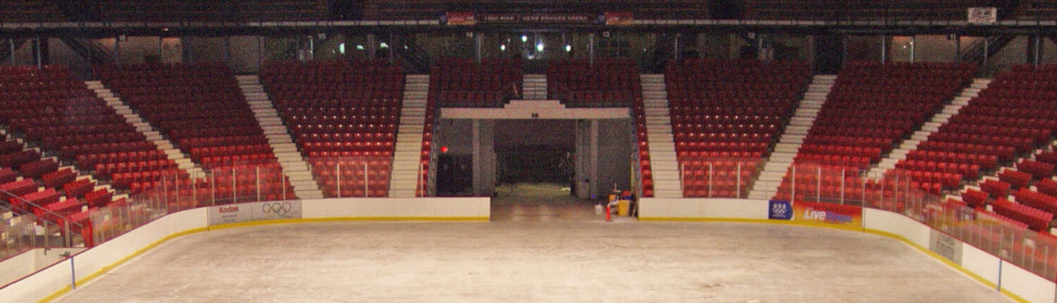 El interior del Herb Brooks Arena, anteriormente conocido como el Centro Olímpico hasta 2005, en Lake Placid , Nueva York, EE. UU.